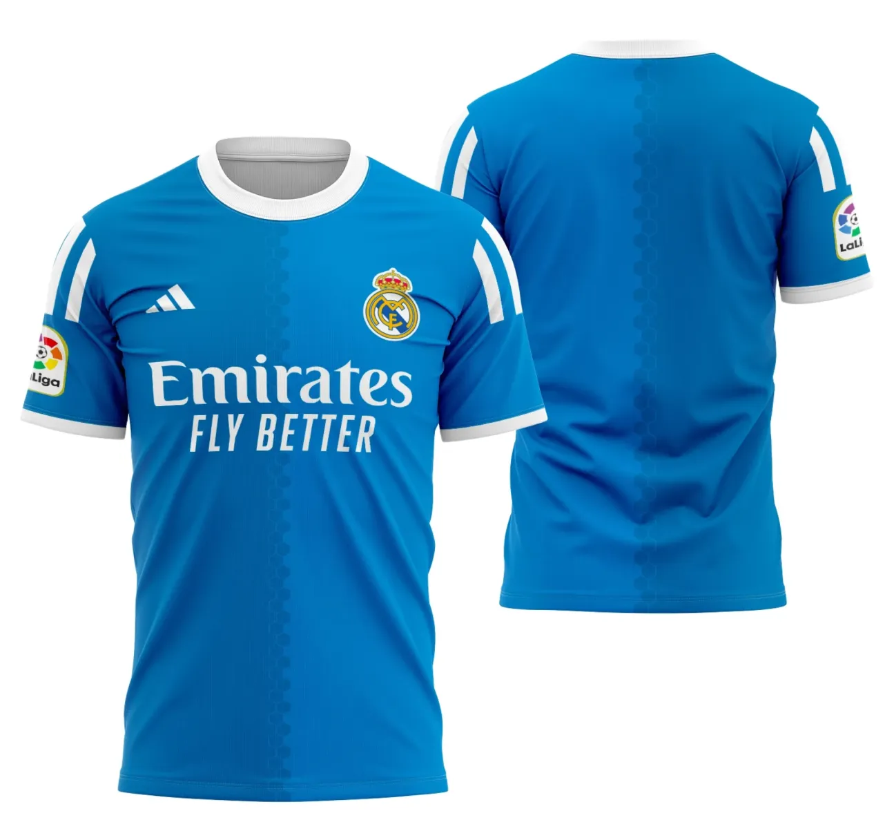 - Design com o logo do Real Madrid destacado no peito e uma estampa grande nas costas, capturando o espírito do clube;